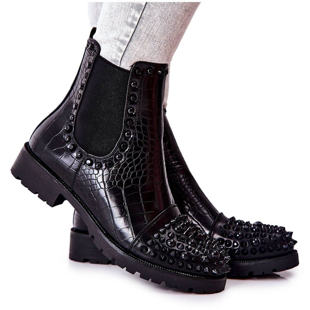 Zögern Sie nicht! Verleihen Sie Ihrer Sammlung etwas Stil, indem Sie schwarze Chelsea-Stiefel von Monah mit Strasssteinen wählen. Dies ist ein Muss für jede modebewusste Frau!