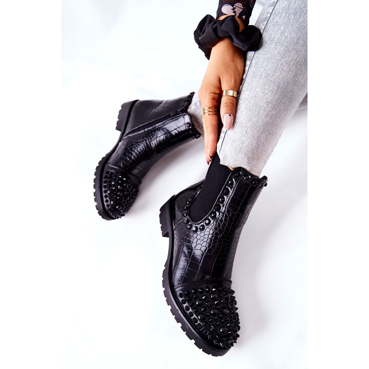 Entdecken Sie ein einzigartiges Stiefelettenmodell, das eine perfekte Ergänzung Ihrer Garderobe sein wird! Schwarze Chelsea-Stiefel von Monah mit Strasssteinen sind ein Angebot für Frauen, die nicht nur Wert auf einen modischen Look, sondern auch auf Alltagskomfort legen. Diese Stiefeletten aus Faux-Wildleder vereinen Ästhetik und Funktionalität.