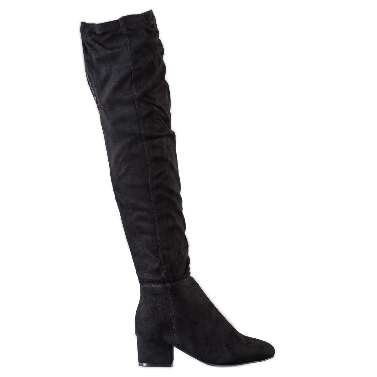 Der über dem Knie liegende und 40 cm breite Schaft betont die Beine perfekt und der stabile 5-Zentimeter-Blockabsatz verleiht Selbstbewusstsein und macht die Haltung noch eleganter. Dank der glatten Sohle aus synthetischem Material sind die Musketiere zudem pflegeleicht.