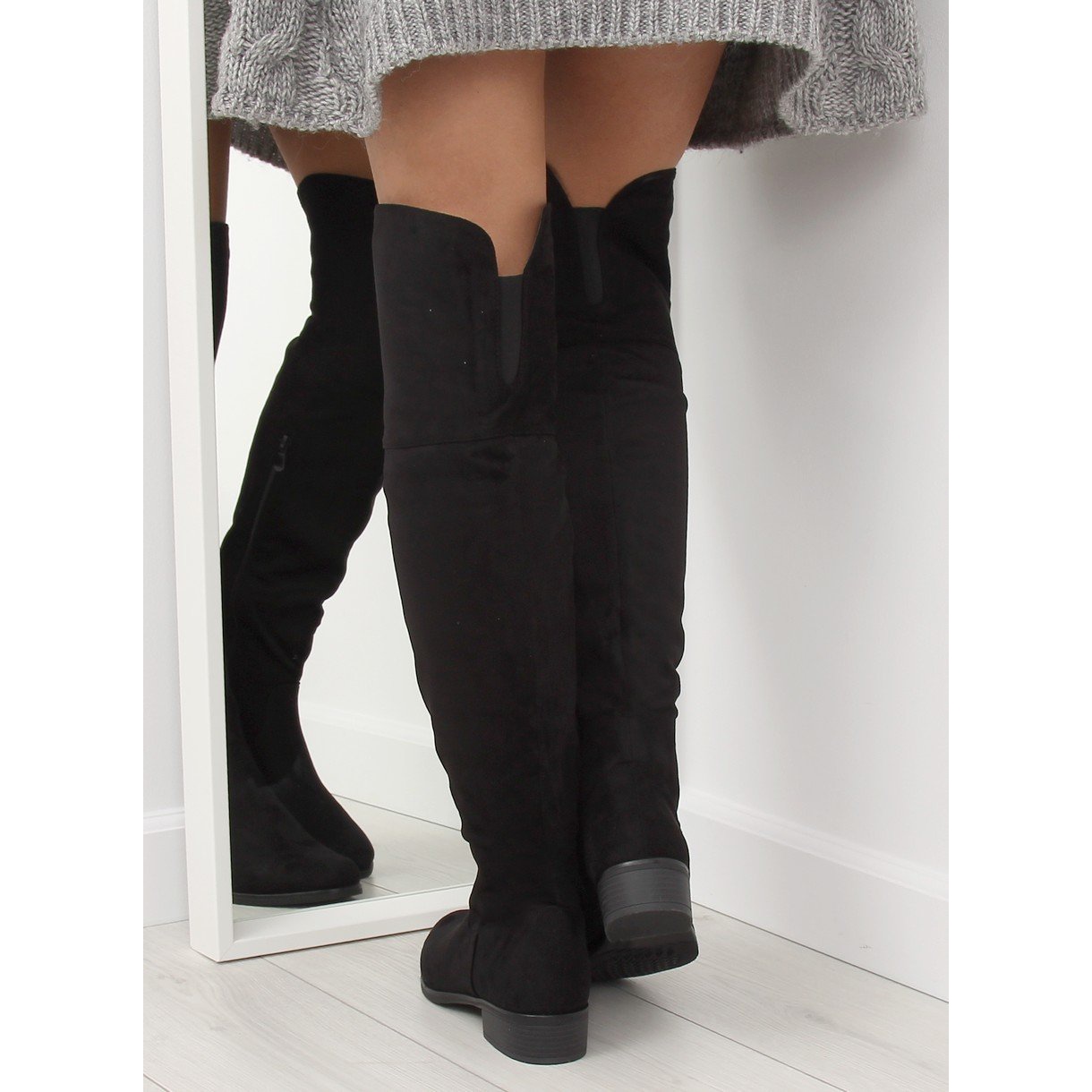 Diese schwarzen Musketiere aus hochwertigem, ökologischem Wildleder verleihen Ihrer Garderobe mit Sicherheit einen Hauch von Luxus. Ihr Inneres ist mit zartem Fell gefüttert, was für optimale Isolierung und Tragekomfort sorgt. Die Höhe des Schafts über dem Knie verleiht Eleganz und betont die Beine der Frau, und durch die universelle schwarze Farbe passen sie zu jedem Outfit.