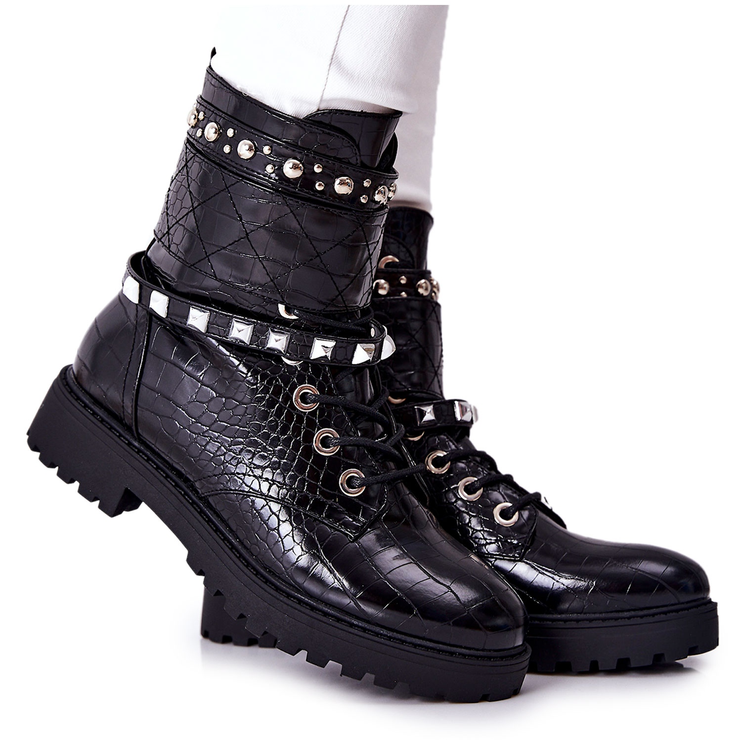 Details: PG1 Schwarze Nephele Warme Stiefel Arbeiter mit Nieten