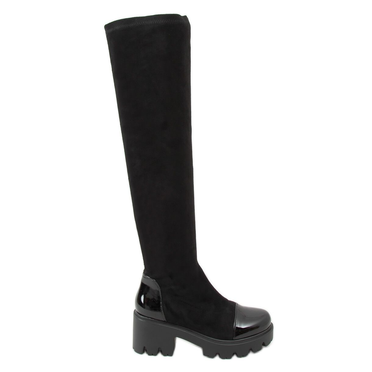 Inna marka Schwarze Overknee-Stiefel mit dicken Sohlen CH19209 Schwarz