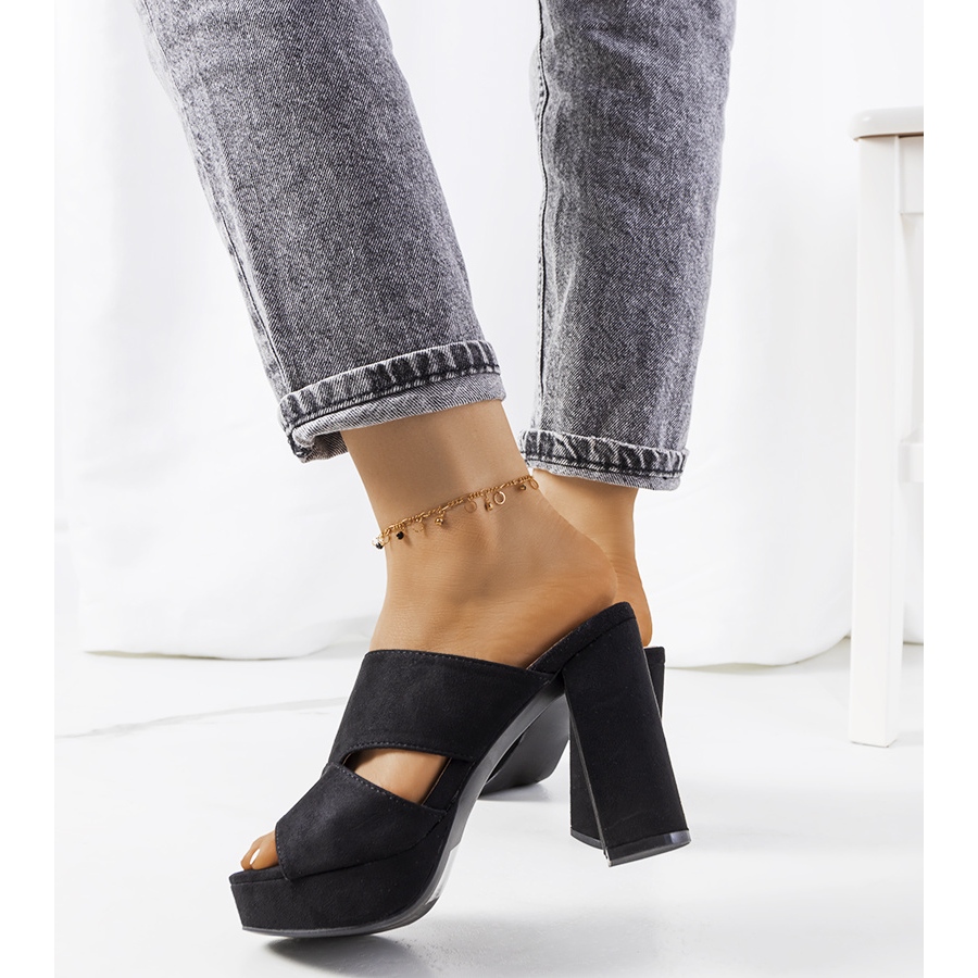 Inna marka Schwarze Pantoffeln am Hornpfosten
