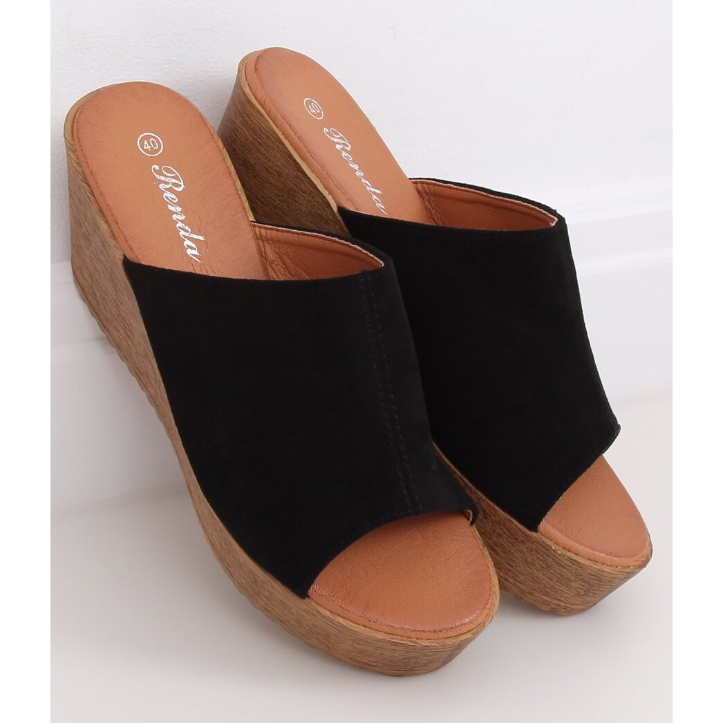 Inna marka Schwarze Pantoffeln auf dem Keil schwarz 10-236 Schwarz
