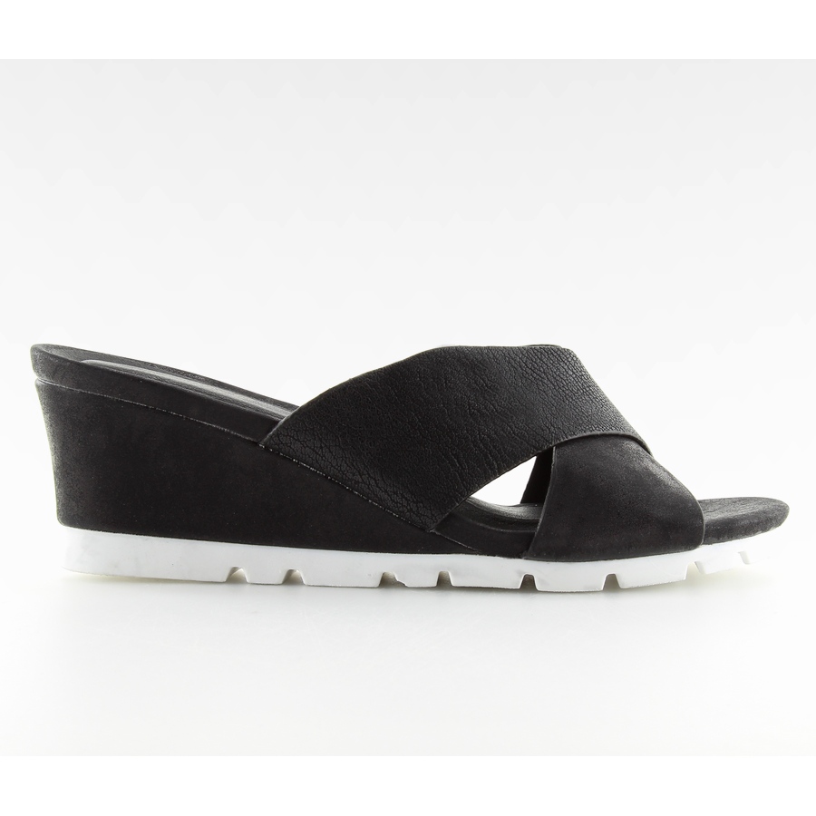 Inna marka Schwarze Pantoffeln auf einem niedrigen Keil schwarz Y-8219