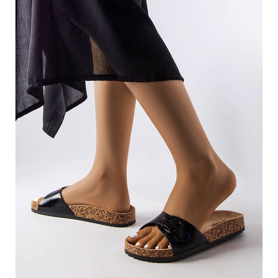 Details: Schwarze Pantoletten aus Kork mit Schnallen von Lee Cooper LCW-22-35-1167L