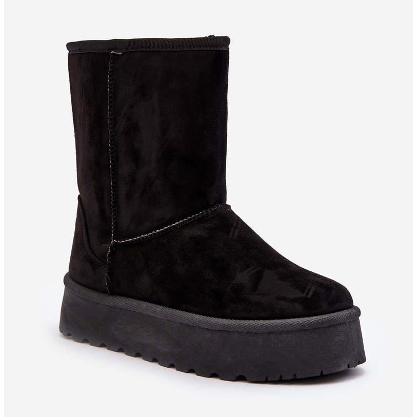 PS1 -Schneestiefel für Frauen - warme, stilvolle und bequeme Schuhe für kalte Tage. Ausgelassenes Modell aus ökologischem Wildlederleder in klassischem Schwarz mit dickem Fell in der Mitte, das auch bei niedrigen Temperaturen thermischen Komfort bietet. Für den Knöchel (Höhe des oberen ca. 19 cm) mit einem Gummi, einer Nicht -Slip -Sohle und einer zarten Plattform (ca. 4 bis 4,5 cm), dank der der Schuhe vom kalten Boden perfekt isoliert und beim Gehen stabil sind.