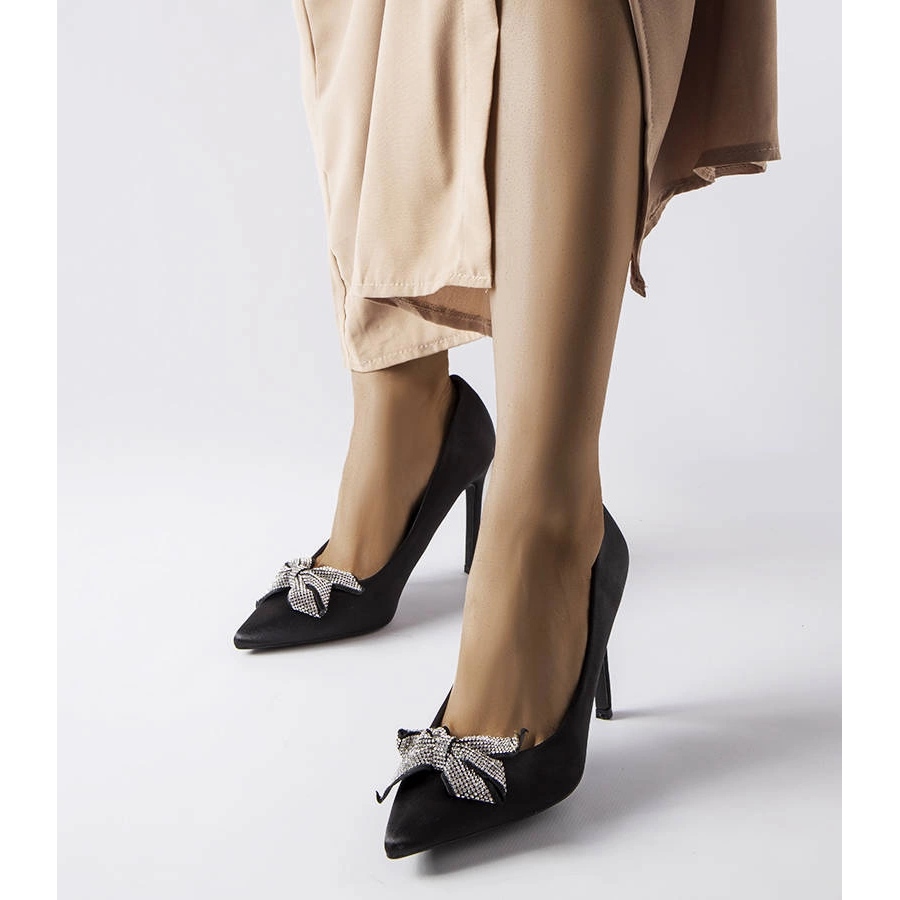 Schwarze High Heels mit einem Satin -Finish mit einem Bogen - Eleganz und Stil für jeden Anlass