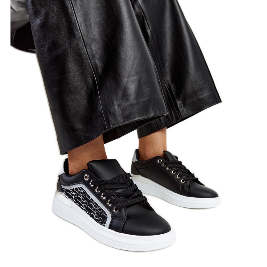 Schwarze Turnschuhe auf einer Plattform mit FeKTE zu einem Must-Have-Glitzer in jeder Frühlingsgarderobe! Sie zeichnen sich durch einen niedrigen Schnitt und eine runde Nase aus, wodurch sie für lange Tage, die sie im Freien verbracht haben, extrem bequem und perfekt sind. Dank des Schnürverbots können Sie sie problemlos an Ihren Fuß anpassen, was einen noch größeren Tragenkomfort gewährleistet.
