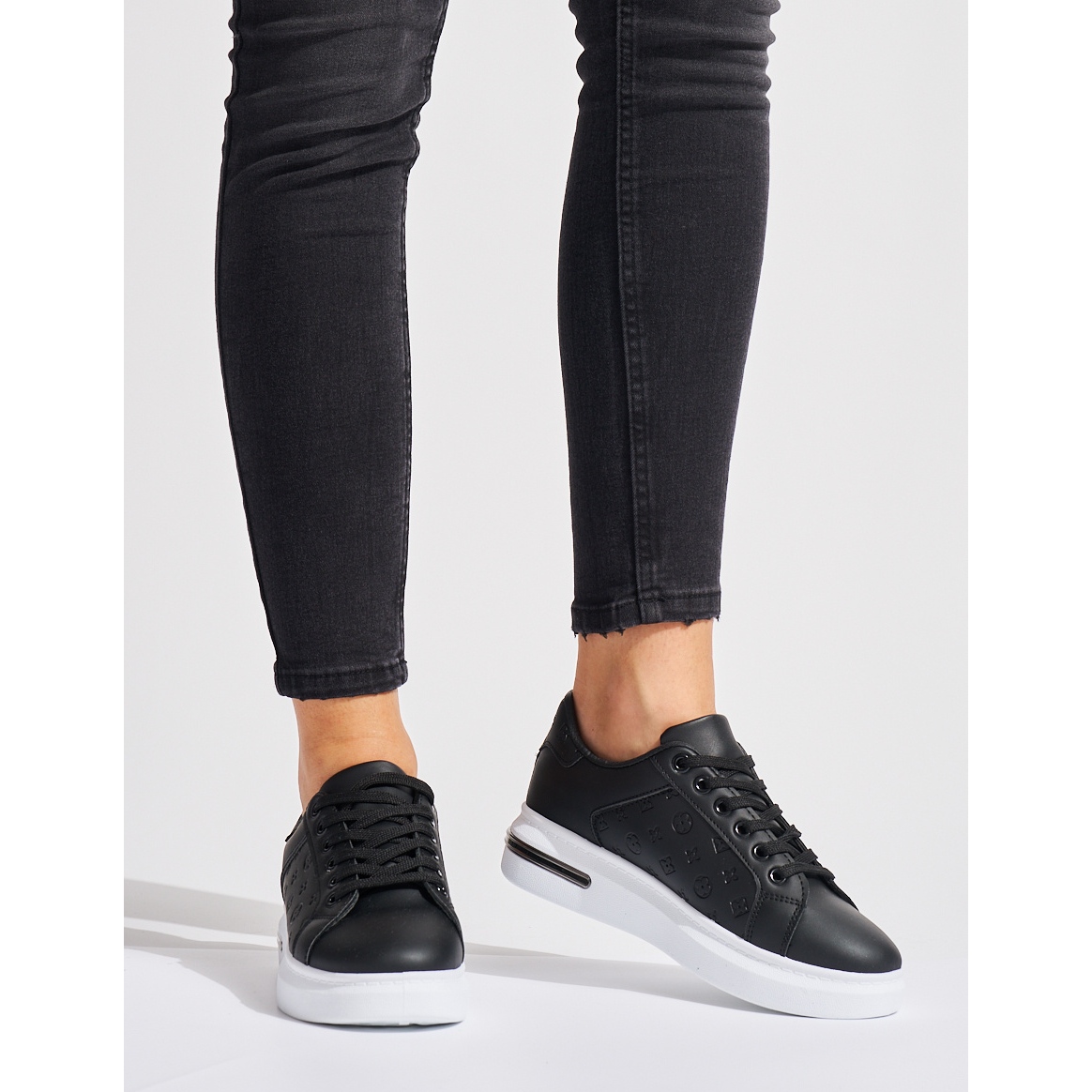 Wir präsentieren elegante schwarze Sportschuhe auf der Plattform einer seriösen Marke, die perfekt Stil und Funktionalität kombiniert. Diese Schuhe wurden für moderne Frauen entworfen, die Komfort und modisches Erscheinungsbild schätzen, und sind die perfekte Ergänzung zu jeder Garderobe.