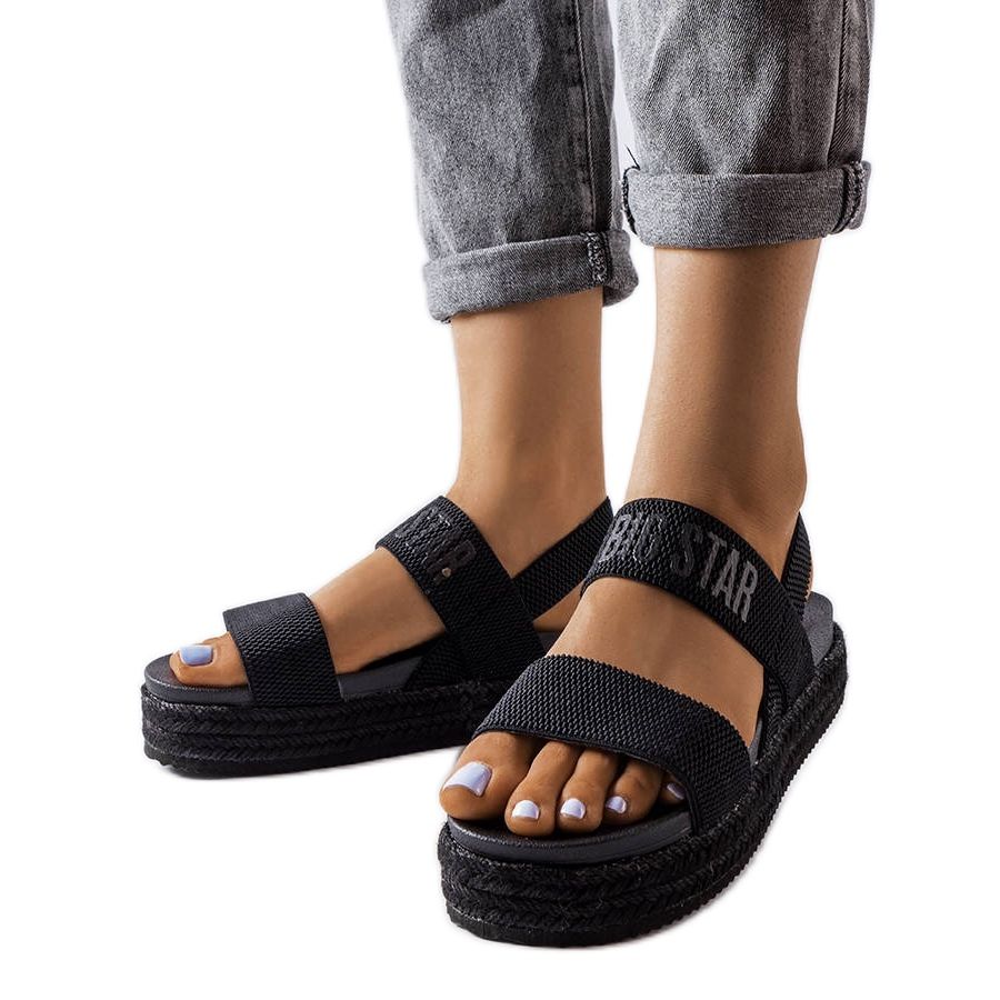 Schwarze Sandalen auf der Big Star LL274856 -Plattform - stilvoller und universeller Espadrilles ideal für den Sommer. Klassische, schwarze Farben und eine komfortable Plattform machen das Modell sowohl für alltägliche als auch für lässigere Stylisationen hervorragend.
