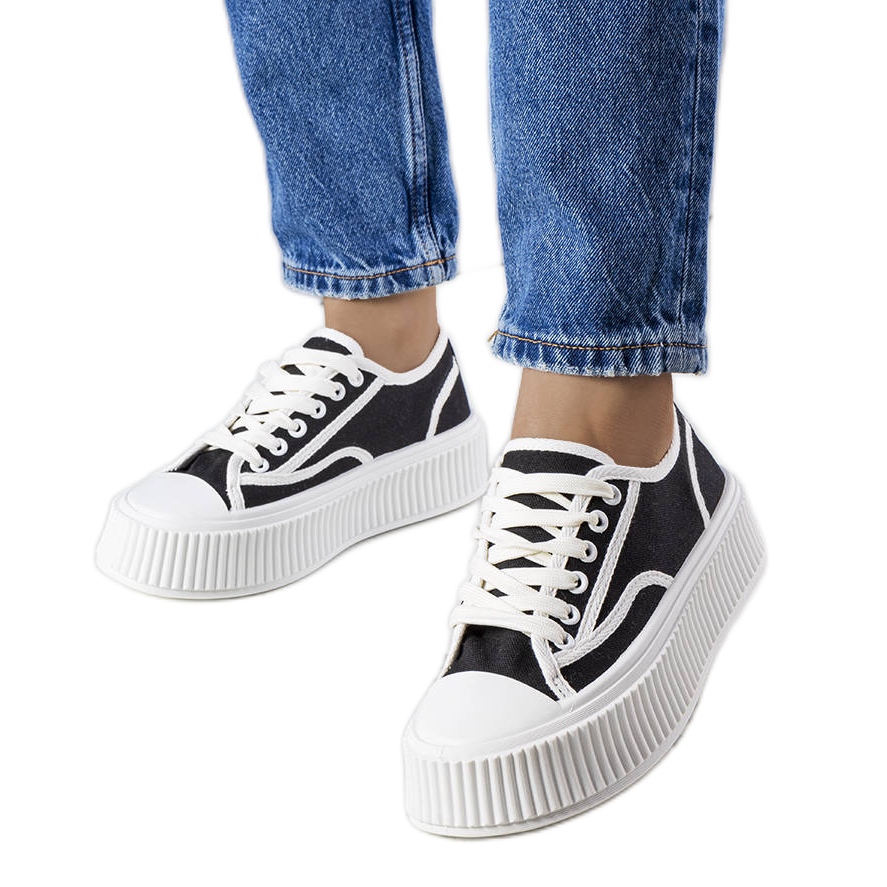 Schwarze Turnschuhe auf der Delores -Plattform - ein modischer Klassiker in einer Streetwear -Ausgabe. Die Kombination aus Einfachheit und Komfort macht es jeden Tag zum perfekten Modell.