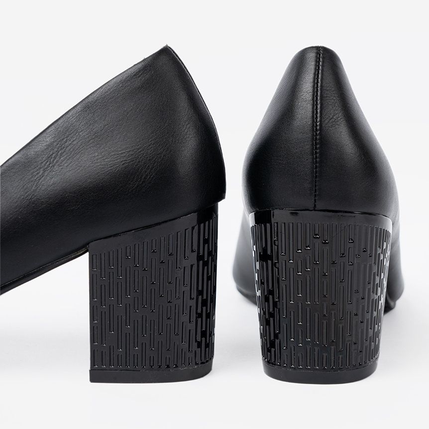 Die Pumpen bestehen aus hochwertiger Hautimitation, die nicht nur stilvoll aussieht, sondern auch die Haltbarkeit sorgt. Das Innere der Schuhe verbirgt einen angenehmen Touch -Einsatz von natürlichen Leder, was den Komfort garantiert, den ganzen Tag zu tragen. Dank der Einführung ist das Anziehen und Entfernen von Schuhen extrem einfach, und die baute Ferse erhöht Stabilität.