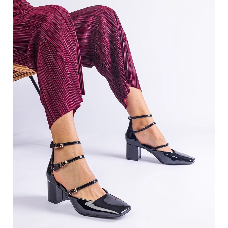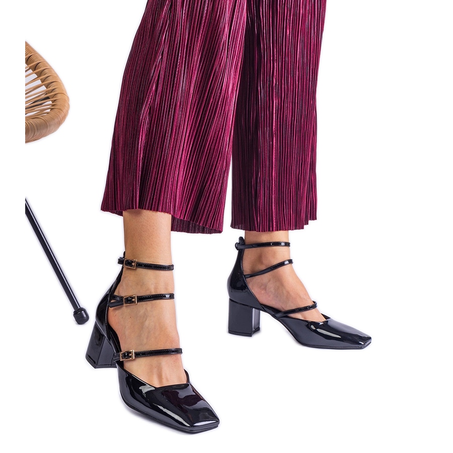 Inna marka Schwarze Pumpen, die auf einem Pfosten mit Schnallen lackiert sind