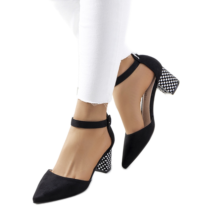 Details: Schwarze Pumps am Rowena-Post