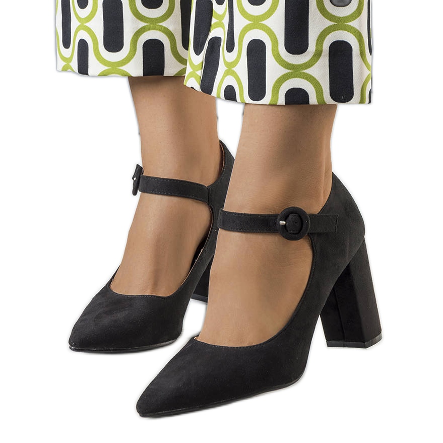Keller-Pumps sind mit einem bequemen Schnallenverschluss ausgestattet, der eine perfekte Passform am Fuß ermöglicht. Die schwarze Farbe macht diese Schuhe universell und lässt sich problemlos mit verschiedenen Stilen kombinieren – von eleganten Kleidern bis hin zu lässigen Kombinationen mit Jeans.