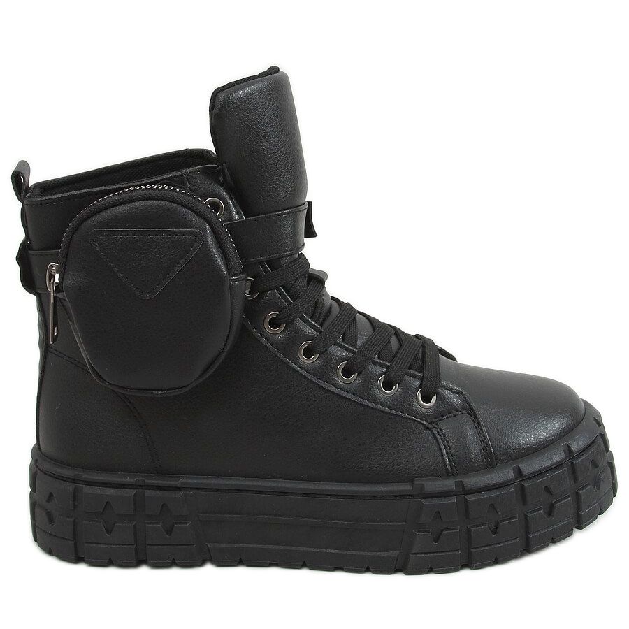 Entdecken Sie Komfort und Stil in einem mit den RE11P Black High-Top-Sneakern. Diese Damen-Schnürsneaker sind die perfekte Wahl für Frauen, die modische Lösungen für den Alltag suchen. Sie zeichnen sich durch einen klassischen, sportlichen Schnitt aus, der perfekt zu aktuellen Trends passt. Dieses Modell zeichnet sich durch eine abnehmbare Tasche am Gürtel aus, die den Schuhen einen einzigartigen Charakter und Funktionalität verleiht.