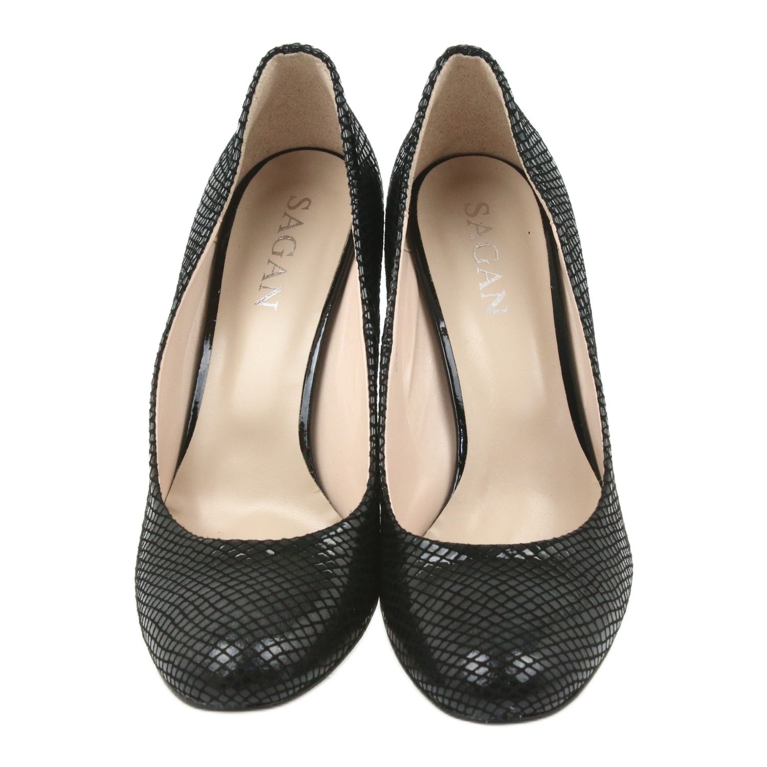 Die Pumps Sagan 2600 in elegantem Schwarz sind ein außergewöhnliches Angebot für Frauen, die Wert auf Stil und Komfort legen. Diese aus natürlichem, speziell geprägtem Leder gefertigten Schuhe vereinen avantgardistisches Design mit klassischen Lösungen und eignen sich daher perfekt für jeden Anlass – von formellen Meetings bis hin zu alltäglichen Ausflügen.