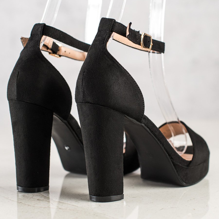 Die Sandalen zeichnen sich durch ein klassisches Design mit offenem Absatz aus, das ihnen Charme verleiht. Ein breiter, 10 cm hoher Pfosten sorgt für Stabilität und Tragekomfort, sodass Sie jeden Moment genießen können, ohne sich Sorgen über schmerzende Füße machen zu müssen. Die aus Wildlederimitat gefertigten Sandalen sehen äußerst stilvoll aus und das Innenmaterial aus Faux-Wildleder sorgt für Komfort.
