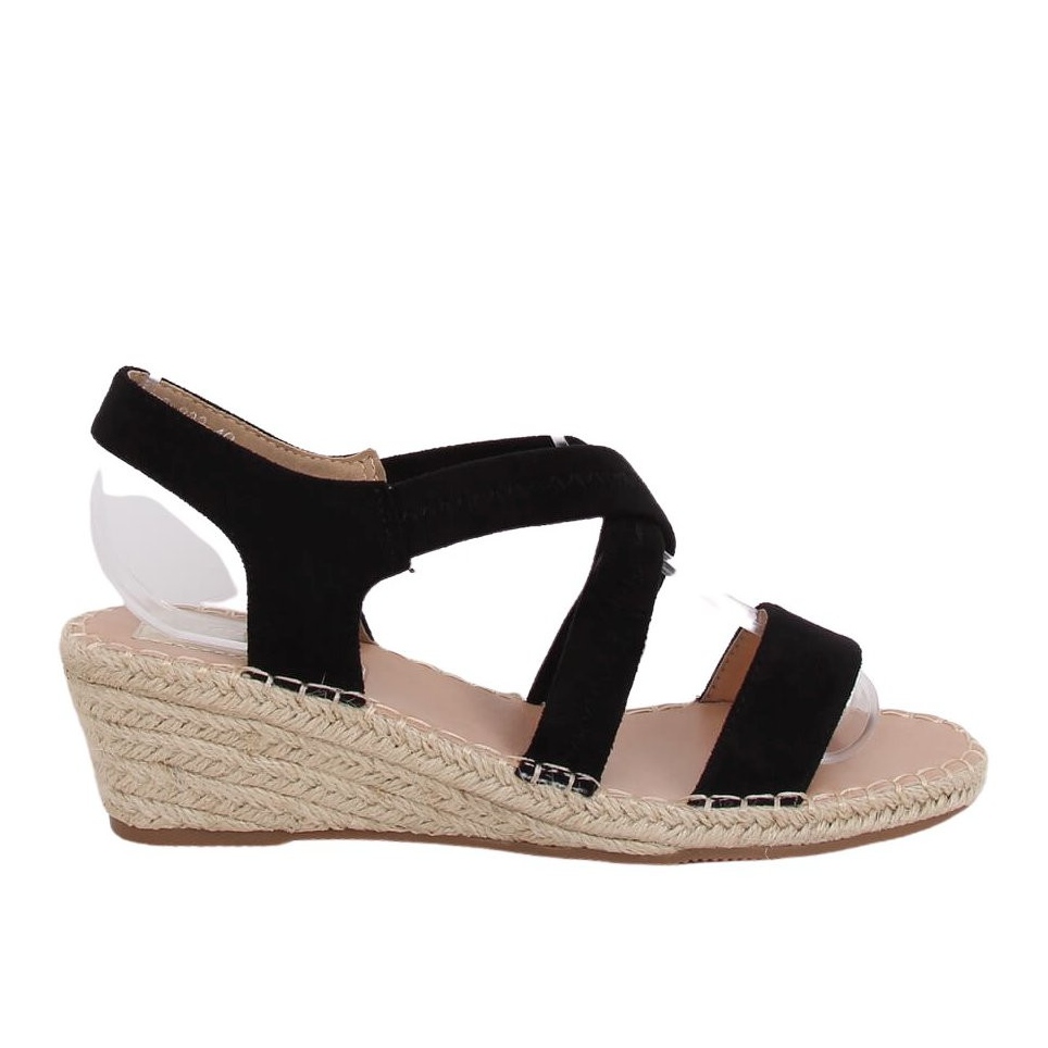 Inna marka Schwarze Sandalen auf Keil-Espadrilles schwarz S-823 Black