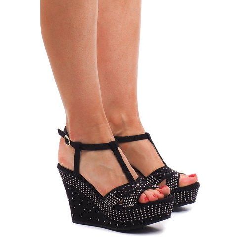 Entdecken Sie die außergewöhnlichen Keilsandaletten F6078 in elegantem Schwarz, die eine perfekte Kombination aus modischem Design und Komfort darstellen. Aus hochwertigem Kunstleder gefertigt, sind diese Schuhe nicht nur stilvoll, sondern auch umweltfreundlich. Glänzende Strasssteine verleihen ihnen einen originellen Charakter, sodass sich jede Frau darin besonders fühlt.