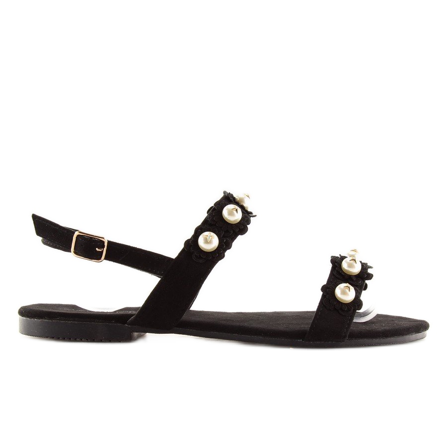 Details: Schwarze Sandalen für Damen mit Perlen 56-66 Schwarz