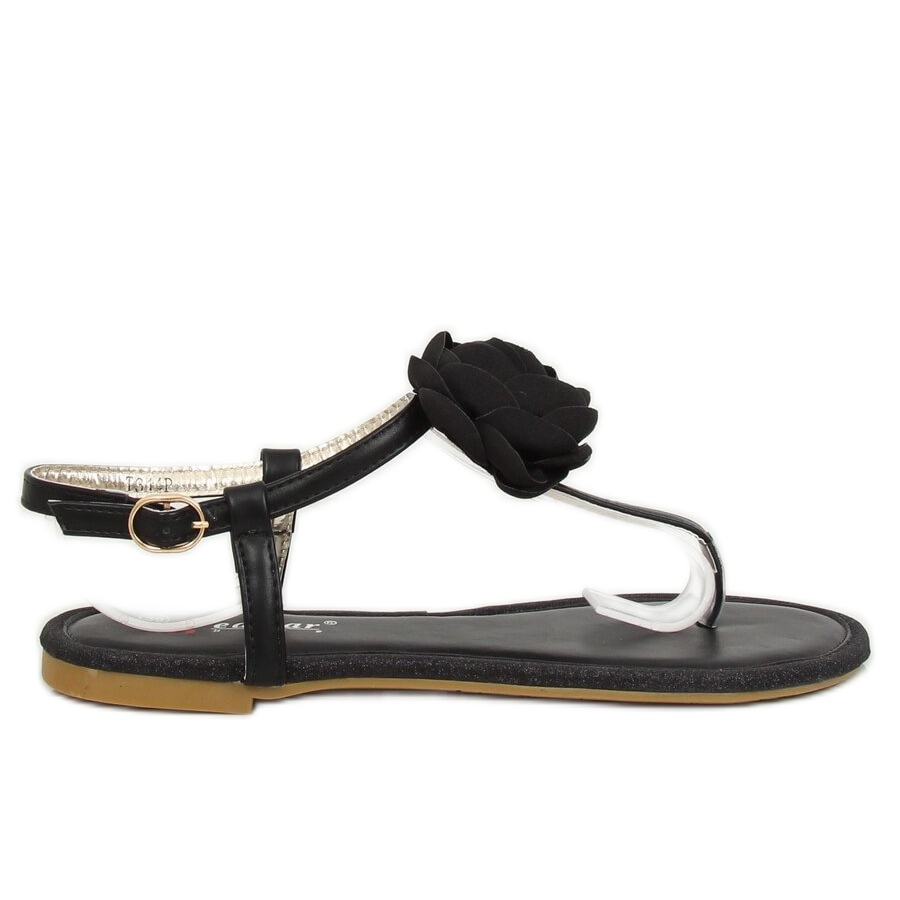 Inna marka Schwarze Sandalen mit Blume T314P Schwarz