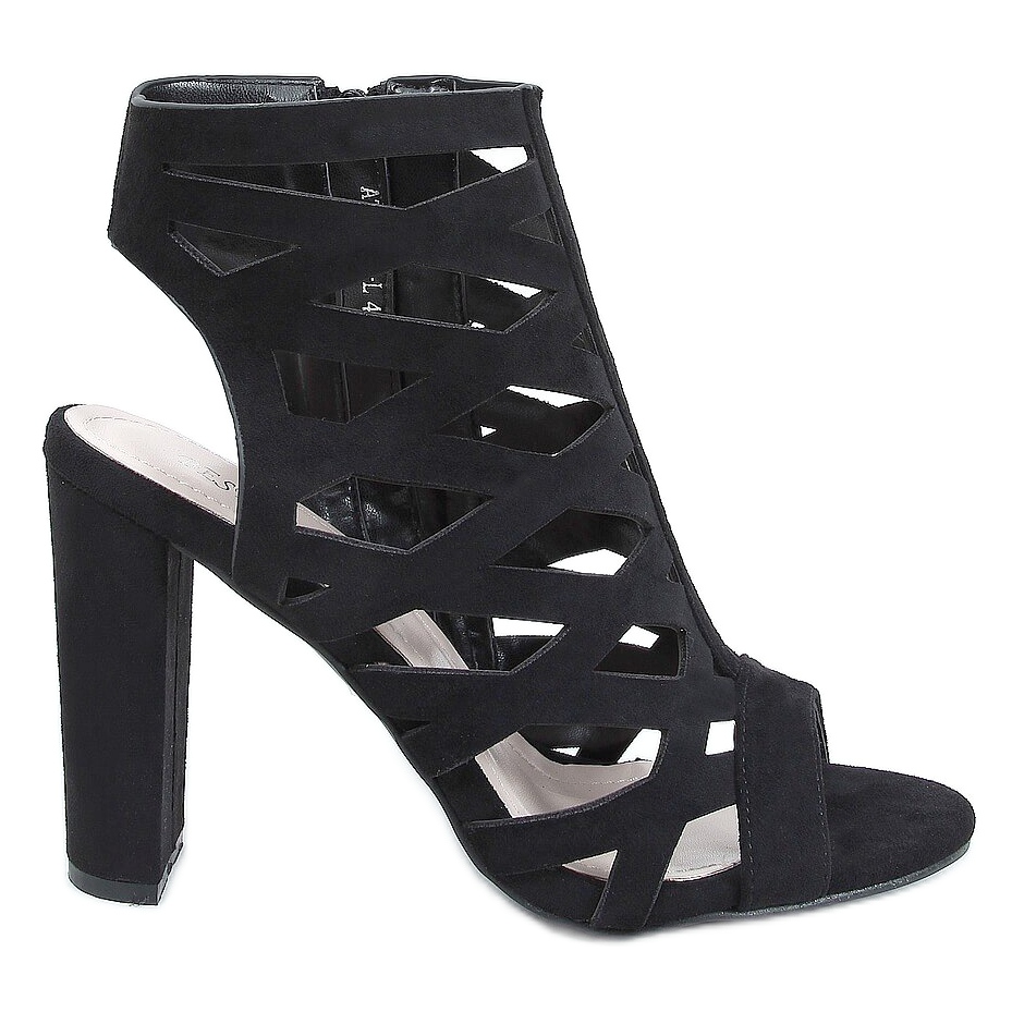 Details: Schwarze Sandalen mit durchbrochenem Absatz AT-0666-L Schwarz