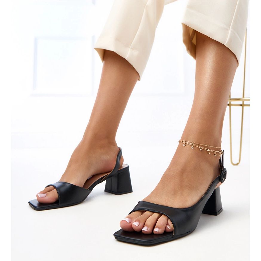 Inna marka Schwarze Sandalen mit einem quadratischen Zeh auf dem Lourdes -Pfosten