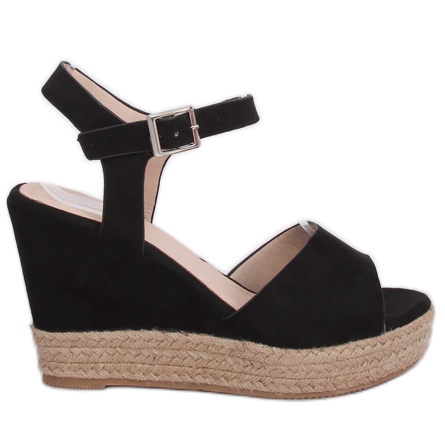 Inna marka Schwarze Sandalen mit Keilabsatz 9R195 Schwarz