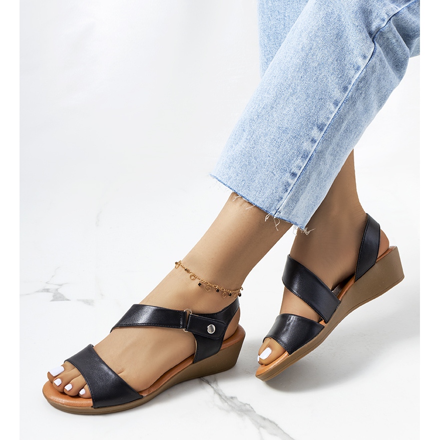 Schwarze Souttar-Keilsandalen sind die perfekte Wahl für Sommertage und verleihen Ihrem Styling Eleganz und einen einzigartigen Charakter. Bequemes Schuhwerk aus hochwertigem ökologischem Leder sorgt für Tragekomfort den ganzen Tag. Durch die weiche Innensohle sind auch lange Spaziergänge kein Problem.
