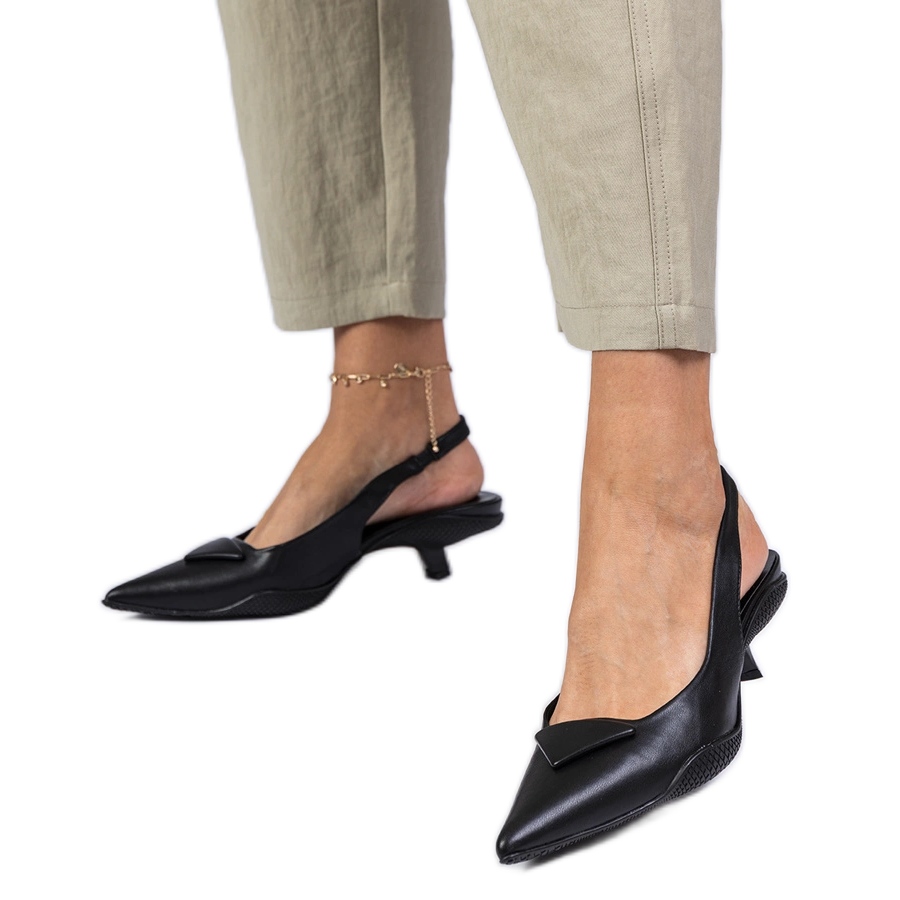 Ein klassisches und modernes LL-262P-Modell aus der Keeshoe-Kollektion. Sandalen aus ökologischem Leder (äußerlich und Einsatz) in einer universellen schwarzen Farbe (schwarz). Sie zeichnen sich durch eine geschlossene, leicht spitze Nase und eine Outdoor -Ferse aus - eine perfekte Kombination aus Eleganz mit sommerem atmungsaktivem.