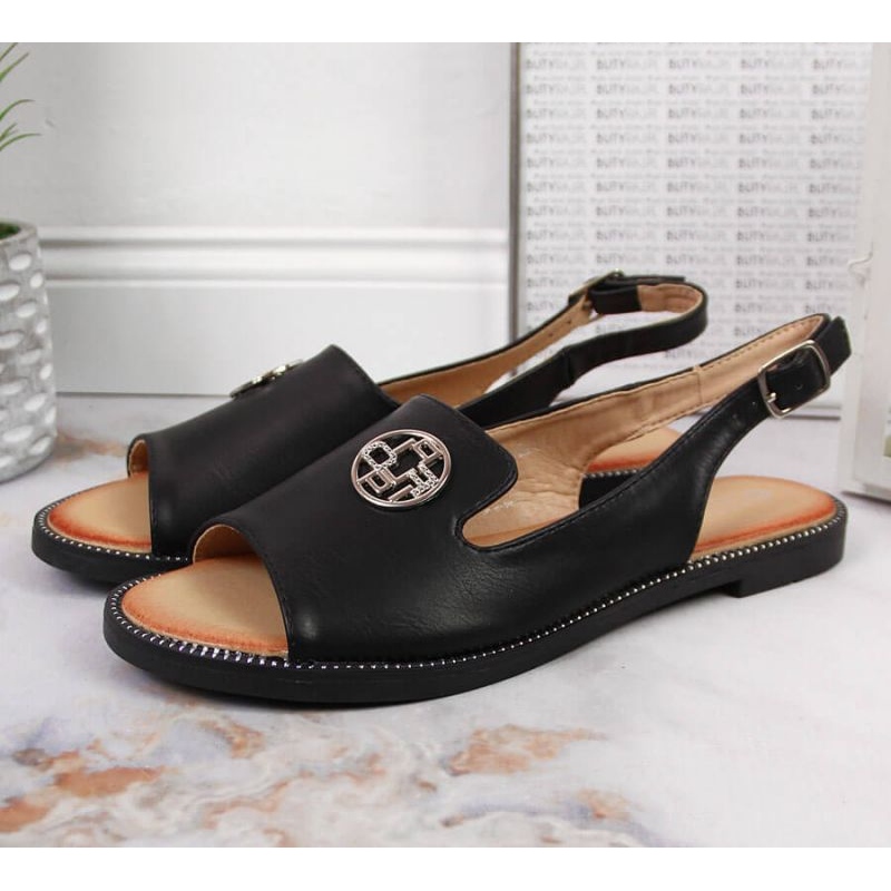 Elegante Filippo -Sandalen, perfekt für Sommertage - ein klassisches schwarz geschnittenes mit einer goldenen Anwendung. Die Kombination aus Leder -Innensohle und sorgfältiger Verarbeitung sorgt für jeden Tag Komfort und elegantes Aussehen.