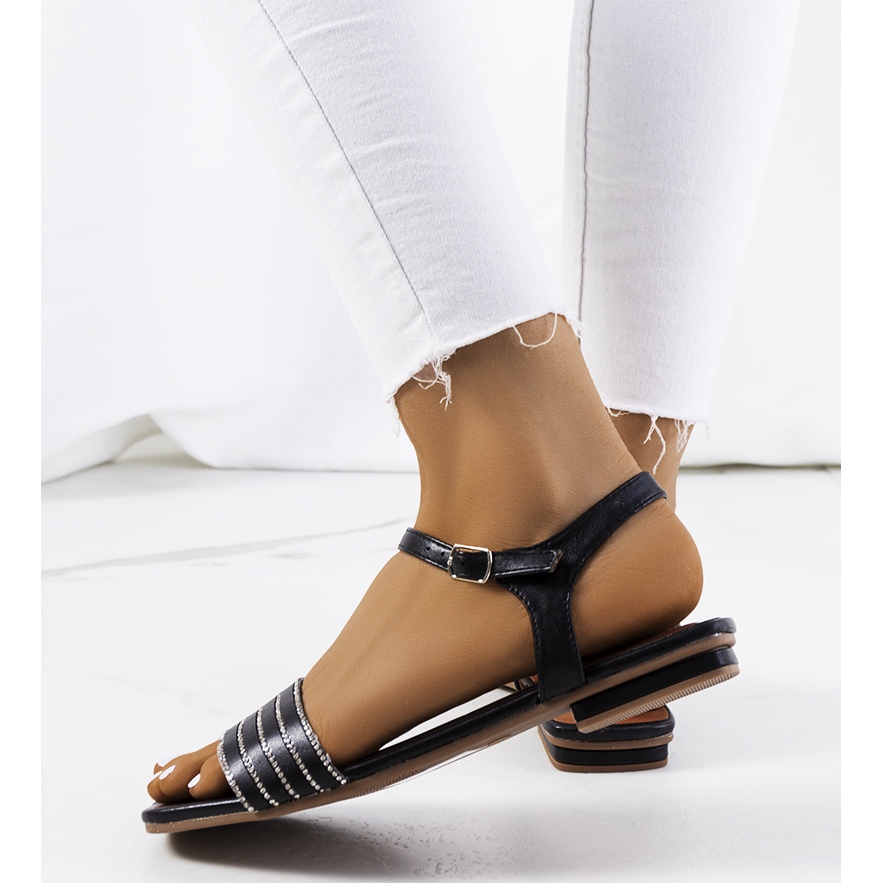 Inna marka Schwarze Sandalen mit Sudbury Zirkonia