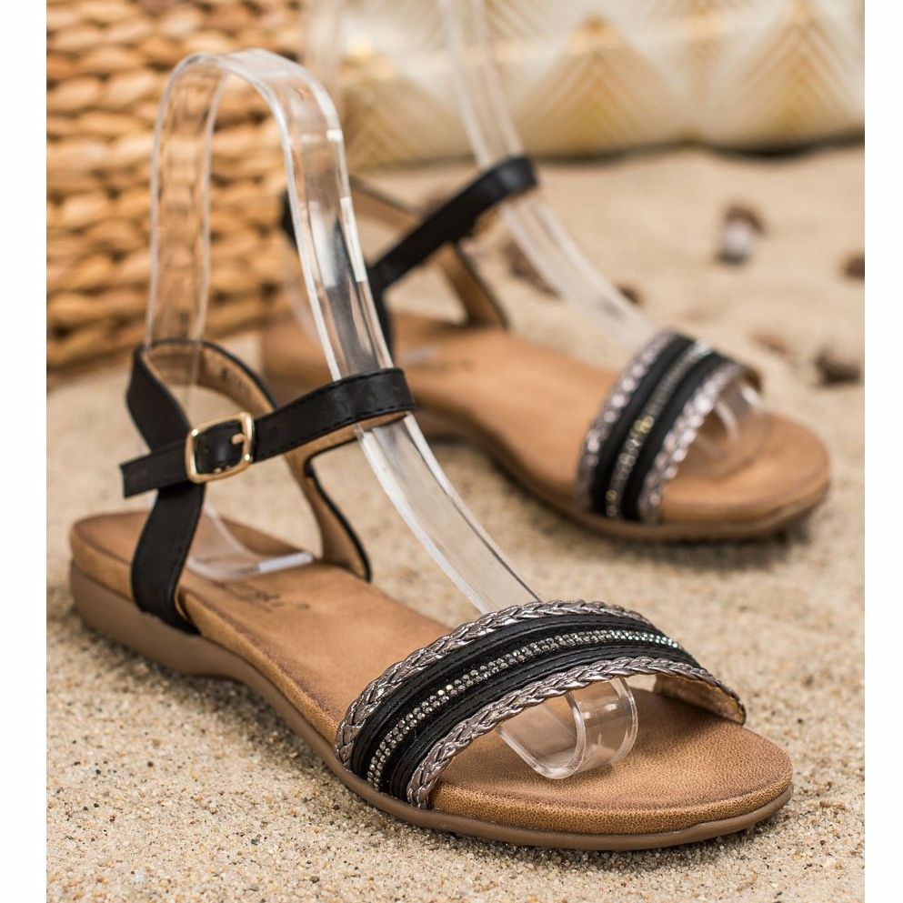 Die Sandalen zeichnen sich durch einen offenen Absatz und einen flachen Absatz aus, der den ganzen Tag über Tragekomfort gewährleistet. Sie bestehen aus hochwertigen Materialien und verfügen über eine Oberschicht aus Kunstleder, was sie sowohl stilvoll als auch pflegeleicht macht. Das Innere der Sandalen ist mit ökologischem Leder gefüllt, was ein angenehmes Tragegefühl und eine ausreichende Belüftung des Fußes garantiert.
