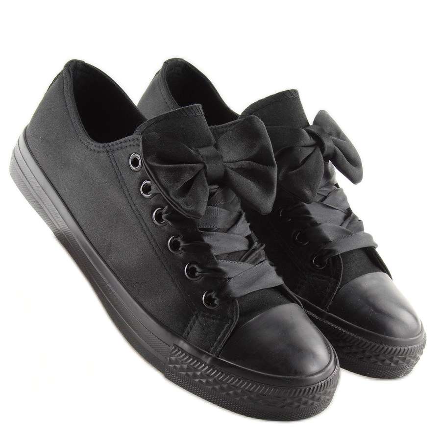 Inna marka Schwarze Satinsneaker für Damen 16-509 Allblack