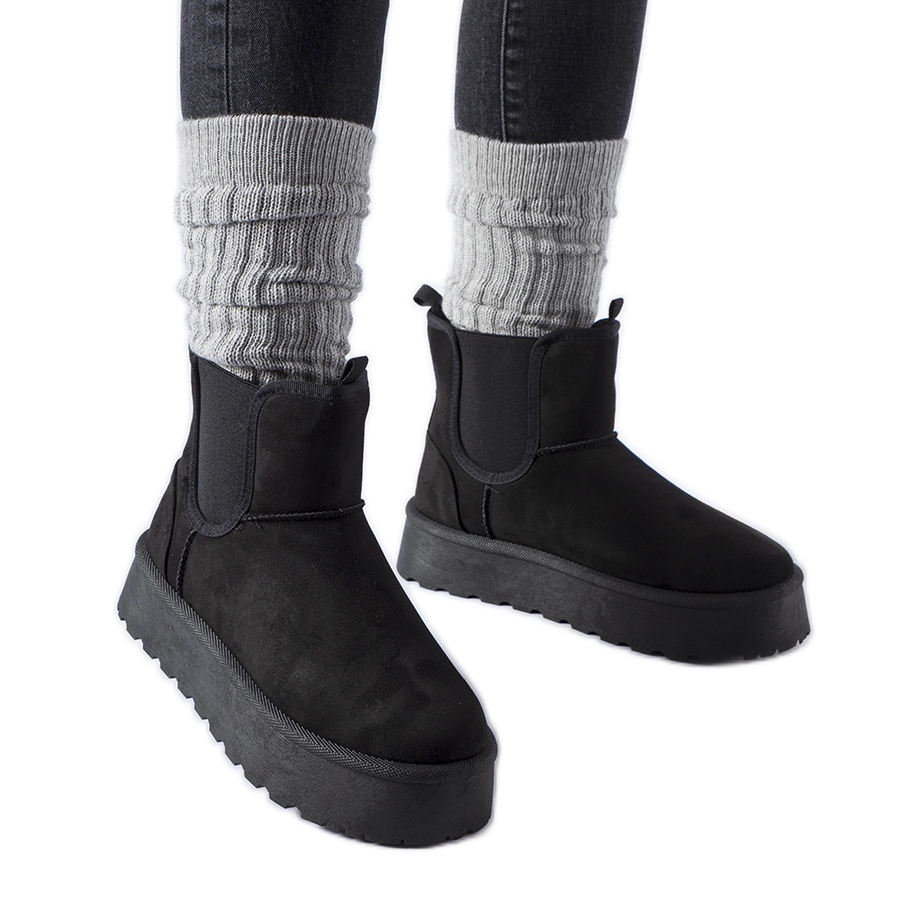 Dank der Gummi -Sohle und der nachdenklichen Konstruktion sind Schneestiefel wasserdicht - Sie müssen sich keine Sorgen um Regen oder Schnee machen. Ein weicher, isolierter Einsatz und ein Material Finish garantieren während der gesamten Saison Wärme und Komfort. Klassische, schwarze Farben und einfaches, schickes Design machen die Schuhe sowohl lässige als auch elegantere Sets.