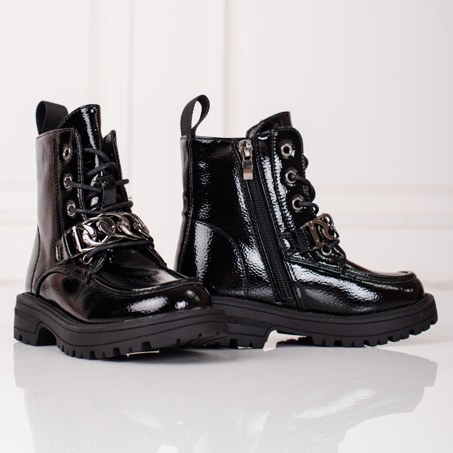 Klassisch, bequem und warm - diese schwarzen Stiefel sind eine universelle Wahl für ein Mädchen für kältere Tage. Kombinieren Sie aus ökologischem Leder, mit einer weichen, gebauten Ferse und einer angenehmen Erwärmung in Form einer Schuhedecke einen lässigen und eleganten Stil, der sowohl für die Schule als auch für Familienausflüge ideal ist.