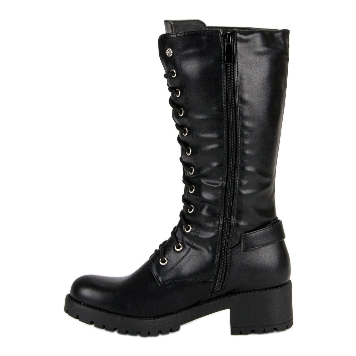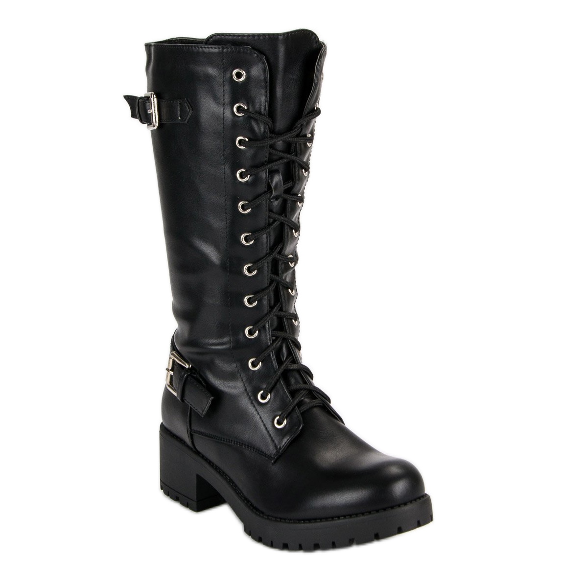 Die schwarzen Stiefel verfügen über einen praktischen Reißverschluss und Schnürverschluss, der eine perfekte Passform an jeder Wade ermöglicht. Zusätzliche dekorative Riemen mit silbernen Schnallen verleihen ihnen einen unverwechselbaren, gewagten Look, perfekt für Frauen, die ihren Styles etwas mehr Flair verleihen möchten.