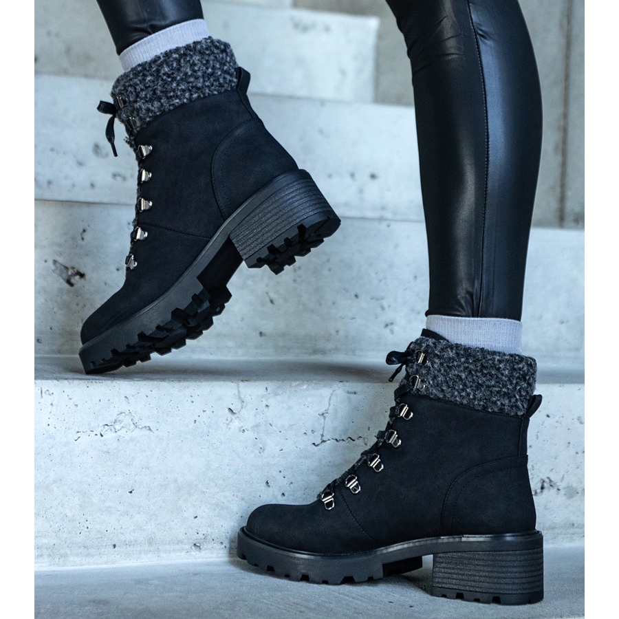 Inna marka Schwarze Schnürstiefel, verziert mit einem Moses-Lammfellmantel