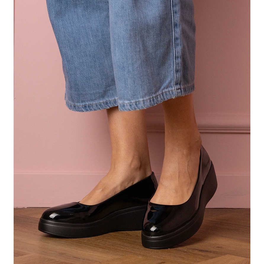 Schwarz -Lackierte Schuhe auf der Plattform sind die perfekte Wahl für Frauen, die Eleganz mit Komfort kombinieren möchten. Das 5043-1-Modell wird durch ein modernes Design unterschieden, das einen Sportstil mit effektiven Details kombiniert, was sie zu einer perfekten Ergänzung für jede Garderobe macht.