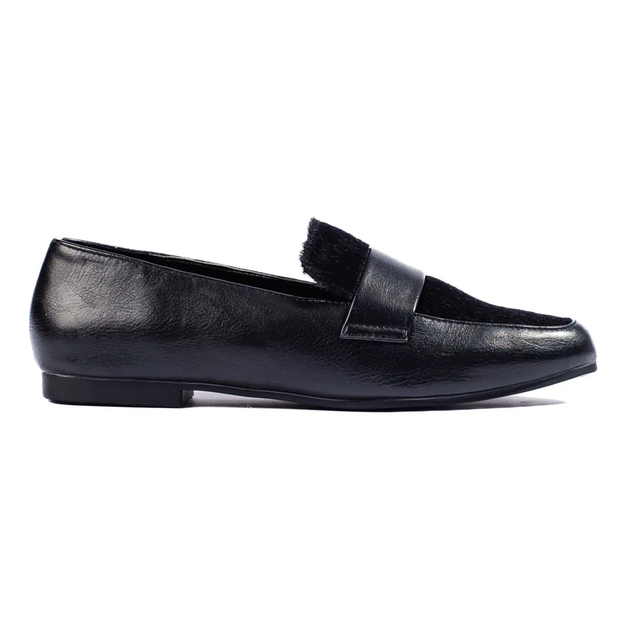 Elegante und bequeme schwarze Slipper in Schwarz, mit weichem Fell dekoriert. Jeden Tag perfekt und für feierliche Anlässe - sie kombinieren einen lässigen Charakter mit einem modischen, weiblichen Akzent.
