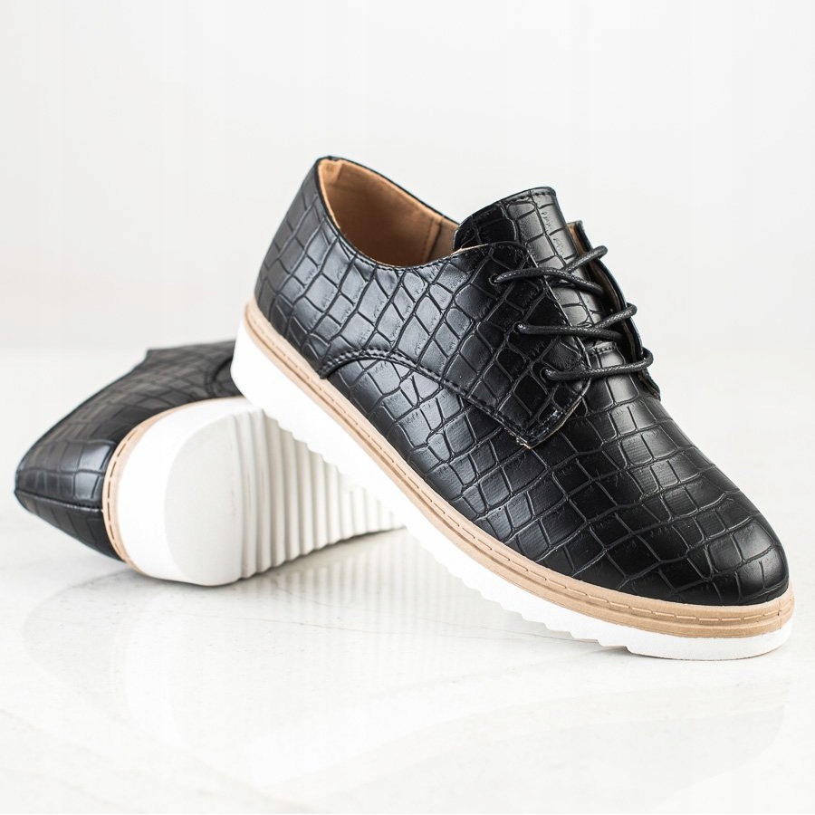 Diese schwarzen Schuhe zeichnen sich außerdem durch ein einzigartiges Tiermuster aus, das sie unverwechselbar macht. Dank der runden Spitze fühlen sich Ihre Füße darin wohl und der Schnürverschluss ermöglicht eine perfekte Passform für jeden Fuß. Die Damenschuhe von SHELOVET sind die perfekte Wahl sowohl für alltägliche Ausflüge als auch für elegantere Anlässe.