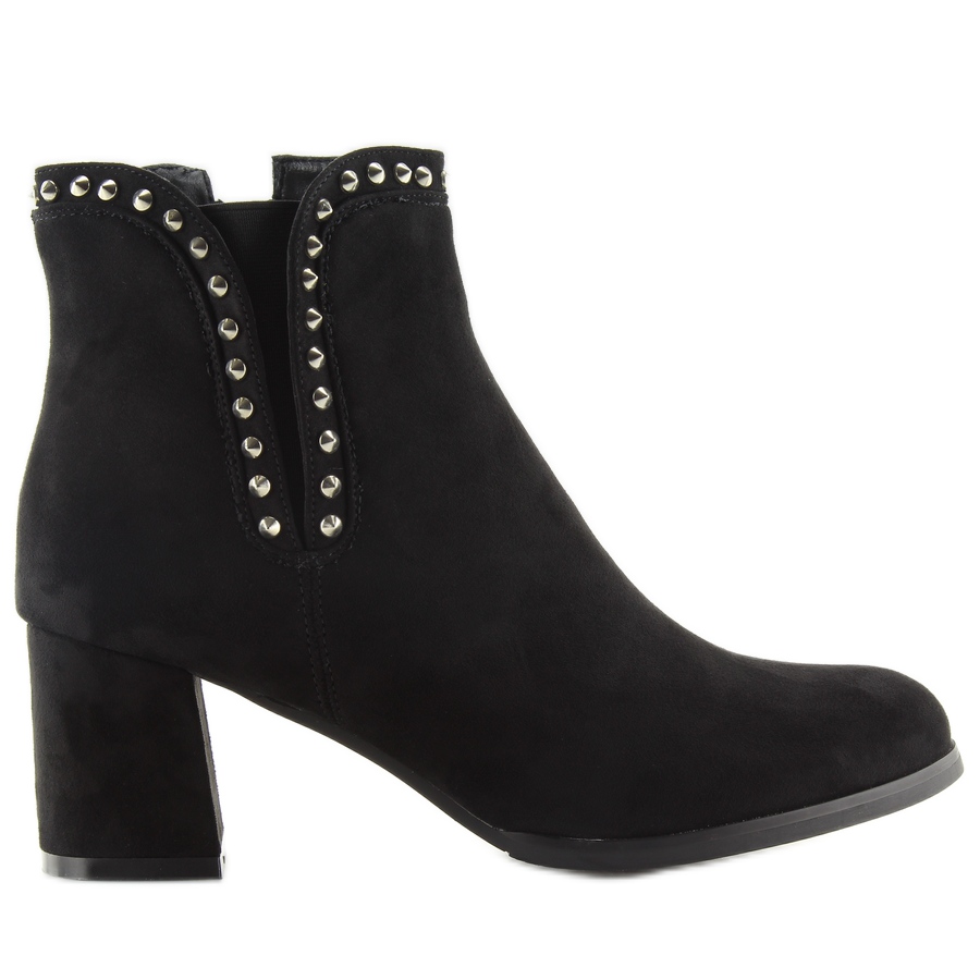 Entdecken Sie Eleganz und Komfort mit schwarzen Damen-Stiefeletten mit hohen Absätzen. Diese einzigartigen Schuhe aus ökologischem Wildleder sind die perfekte Kombination aus Stil und Funktionalität. Sie haben einen bequemen, breiten Absatz mit einer Höhe von 6,5 cm, der für Stabilität bei jedem Schritt sorgt.