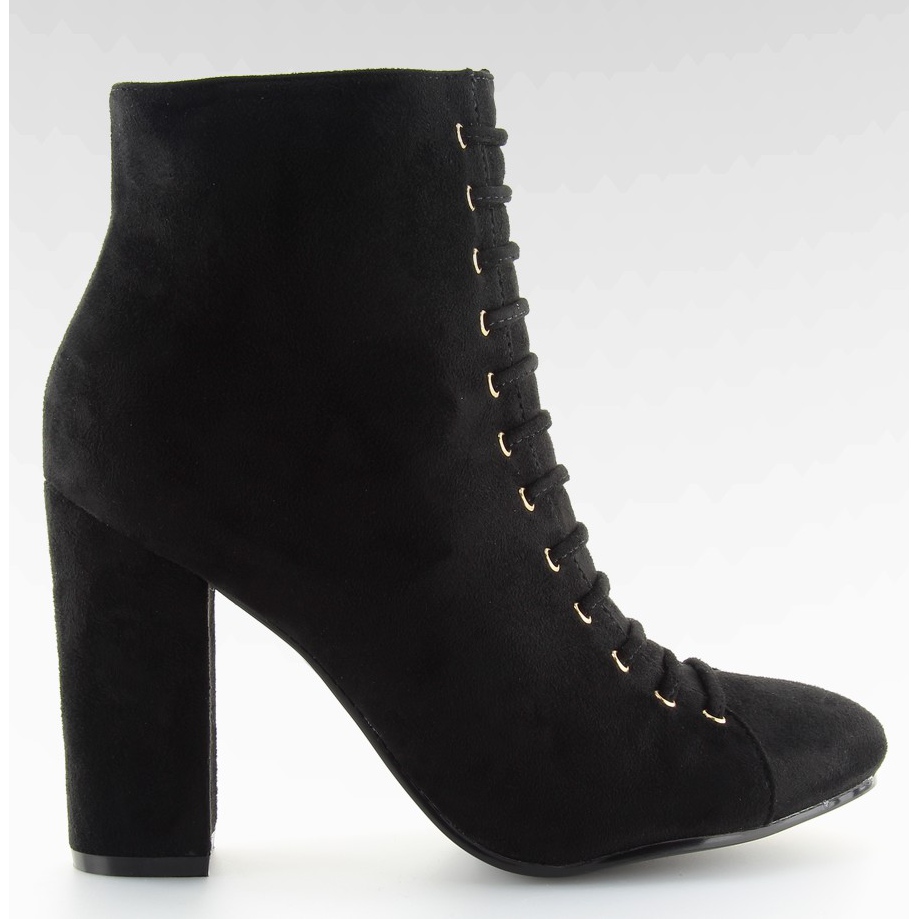 Entdecken Sie Eleganz und Komfort in jedem Styling mit schwarzen Stiefeletten mit hohem Absatz aus Öko-Wildleder. Diese einzigartigen Damenschuhe zeichnen sich durch einen stabilen 10 cm hohen Blockabsatz aus, der der Silhouette eine schlanke Silhouette verleiht und gleichzeitig für Tragekomfort sorgt. Eine dekorative Schnürung ist ein interessanter Akzent, der die Schuhe von anderen abhebt.
