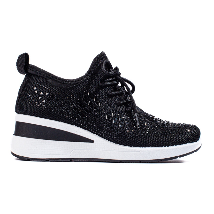 SHELOVET Schwarze Shelovet-Sneaker aus Textil mit Keilabsatz