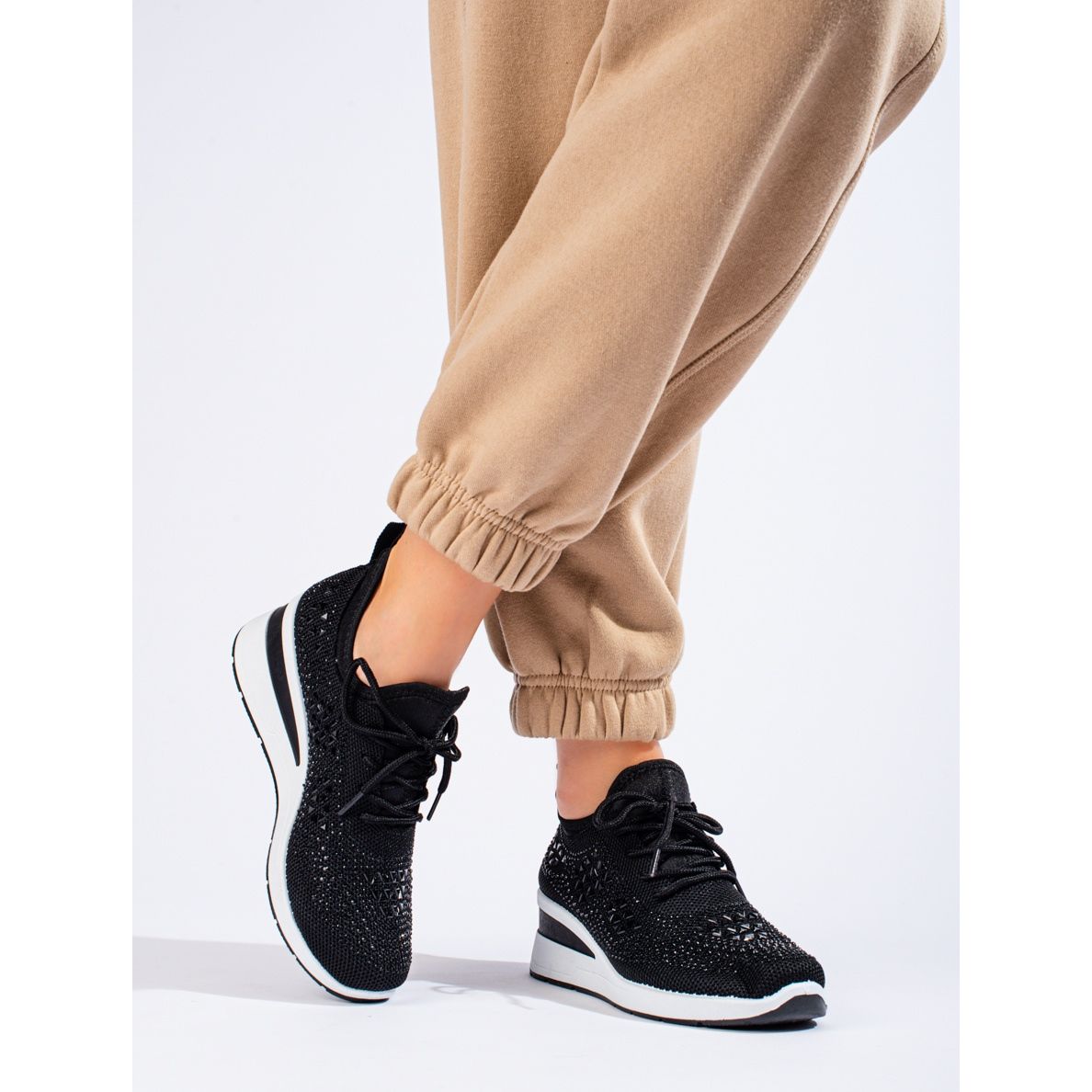 Entdecken Sie stilvolle und bequeme Keilsneaker aus Textil der Marke Shelovet. Dieses im eleganten Schwarz erhältliche Modell ist die perfekte Wahl für Frauen, die sportlichen Komfort mit einem modischen Look verbinden möchten. Sie bestehen zu 100 % aus hochwertigen Textilmaterialien und bieten den ganzen Tag über hervorragende Belüftung und Komfort.