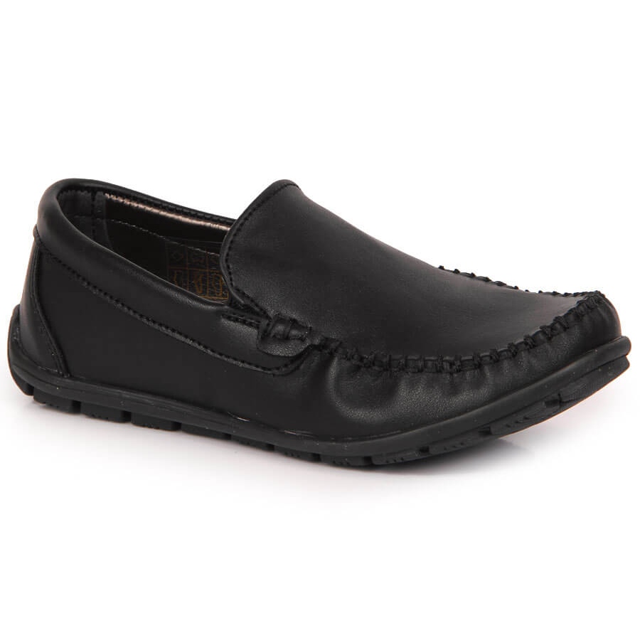 Elegante, schwarze Slipper von Kornecki sind universelle Schuhe für einen Jungen und kombinieren einen klassischen Look mit Komfort des Gebrauchs. Dank der sorgfältigen Herstellung dauerhafter Materialien werden sie im Frühling und Herbst als Freizeitschuhe arbeiten.