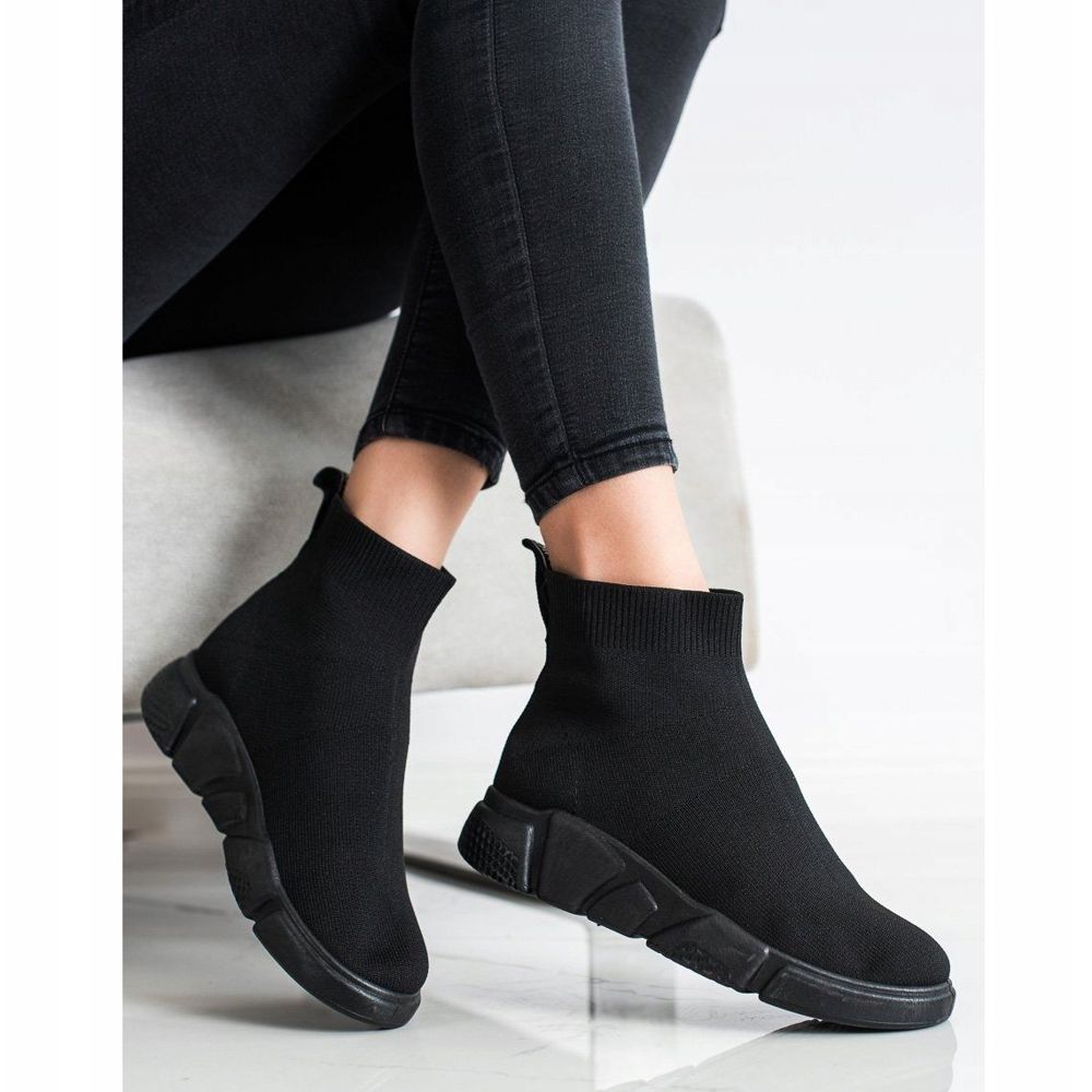 Die schwarzen Slip-On-Sneaker von SHELOVET sind ein ideales Angebot für Frauen, die jeden Tag Wert auf Komfort und einen modischen Look legen. Diese Sportschuhe ohne Absatz zeichnen sich durch einen aufgebauten, weichen Absatz aus, der für Stabilität und Tragekomfort sorgt. Sie bestehen sowohl außen als auch innen aus hochwertigen Textilmaterialien und garantieren eine hervorragende Atmungsaktivität und Passform am Fuß.