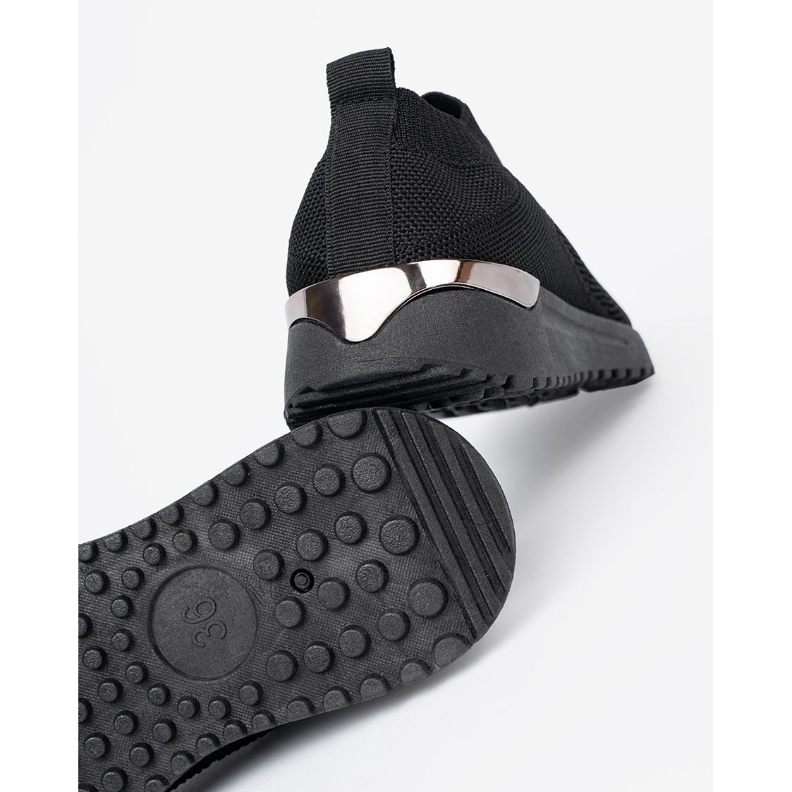 Details: Shelvt Schwarze Slip-on-Sportschuhe mit einem Mesh-Obermaterial